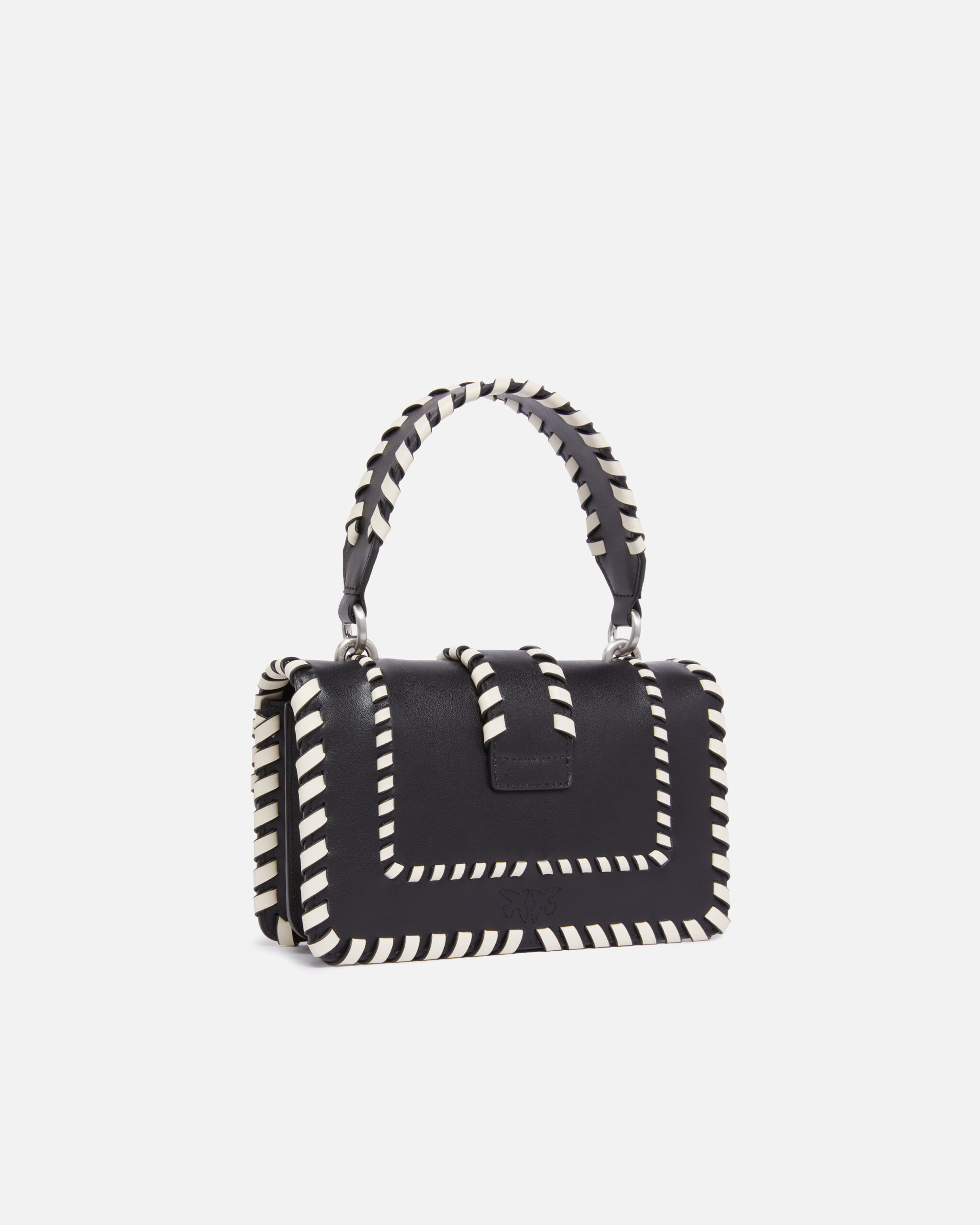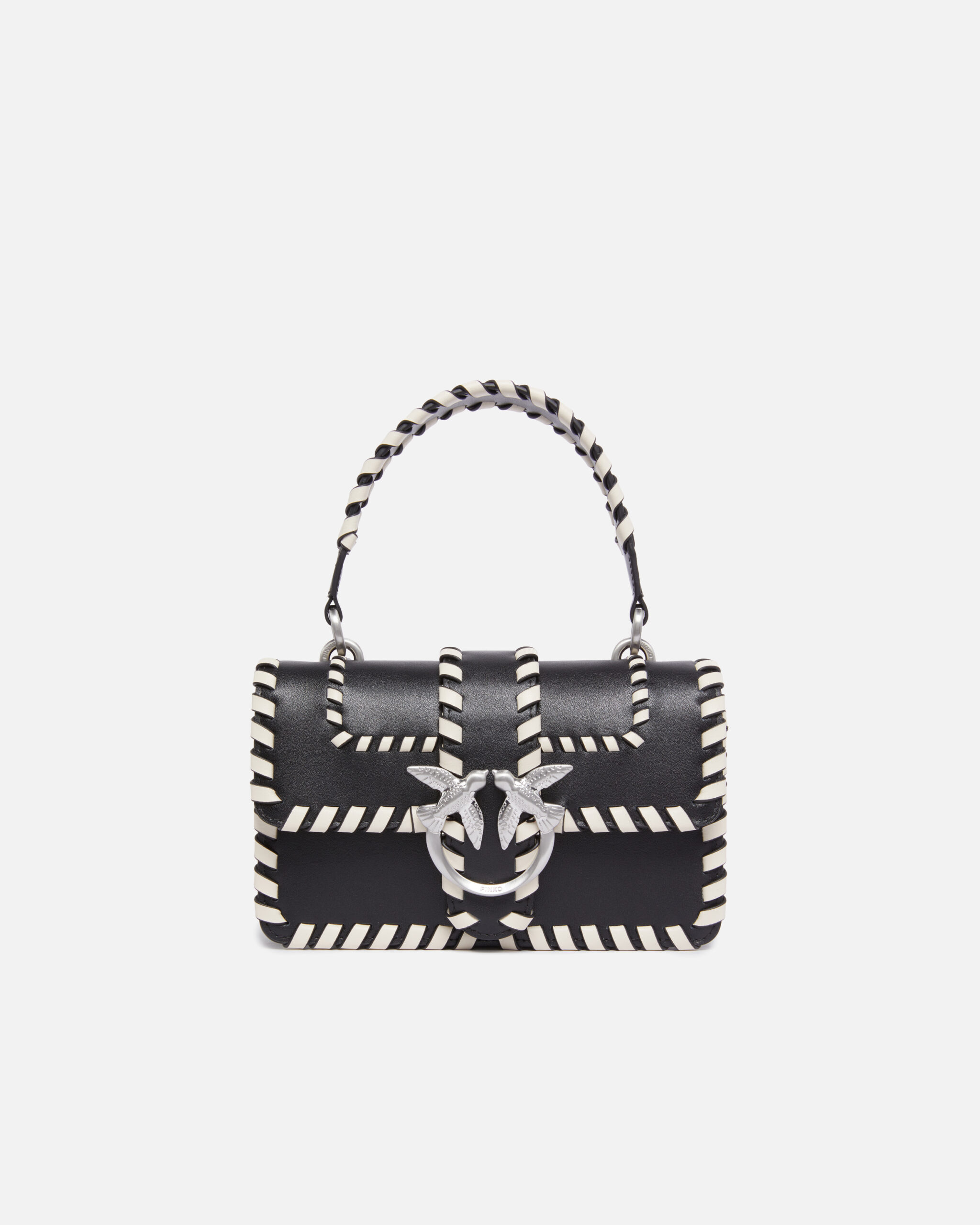 Bolso de mano Mini Love Bag de piel suave, con cierre principal con cremallera para guardar de forma segura tus objetos personales. Caracterizado por la bandolera de piel y el asa para llevarlo en la mano o al hombro, el bolso es extremadamente versátil y práctico. El diseño, adornado con elegantes enhebrados bicolor, se completa con la hebilla Love Birds Diamond Cut, que se convierte en portavoz del inimitable estilo de la marca. ¡Activa tu bolso PINKO: verifica la autenticidad de tu producto y accede a la experiencia personalizada acercando tu smartphone al bordado Love Birds que encontrarás en la parte posterior del bolso!