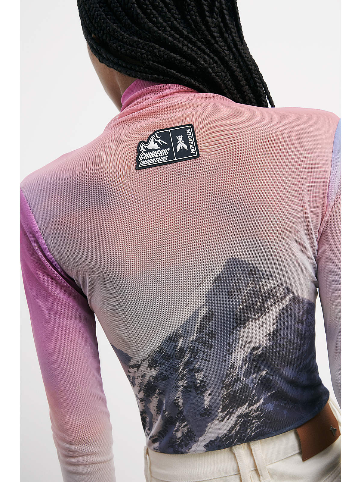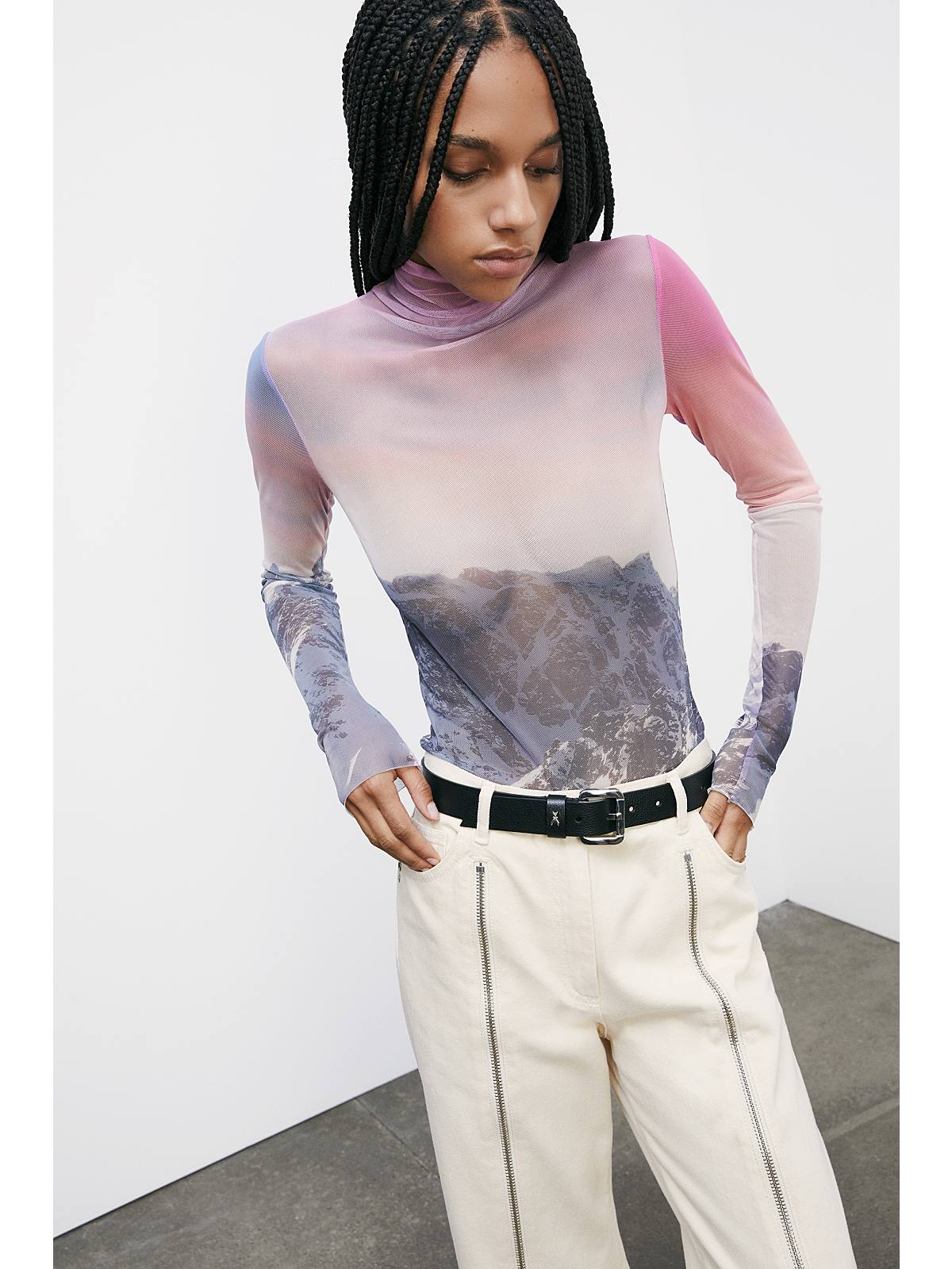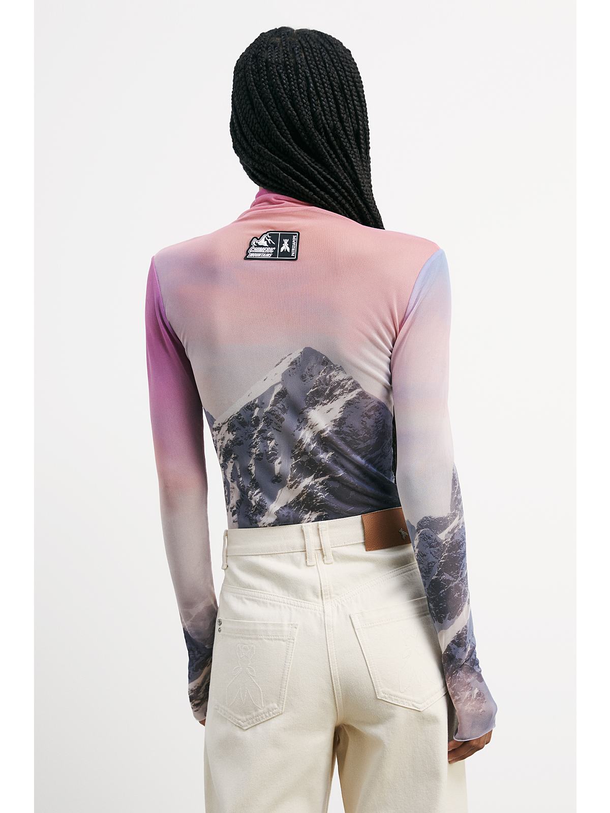 Top de cuello alto semitransparente con estampado de Chimeric Mountains.