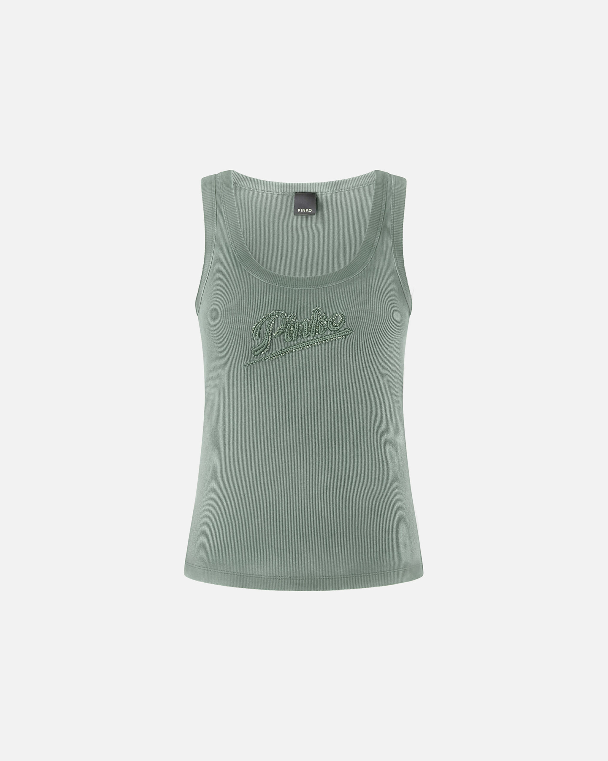 Camiseta sin mangas con bordado PINKO y pedrería