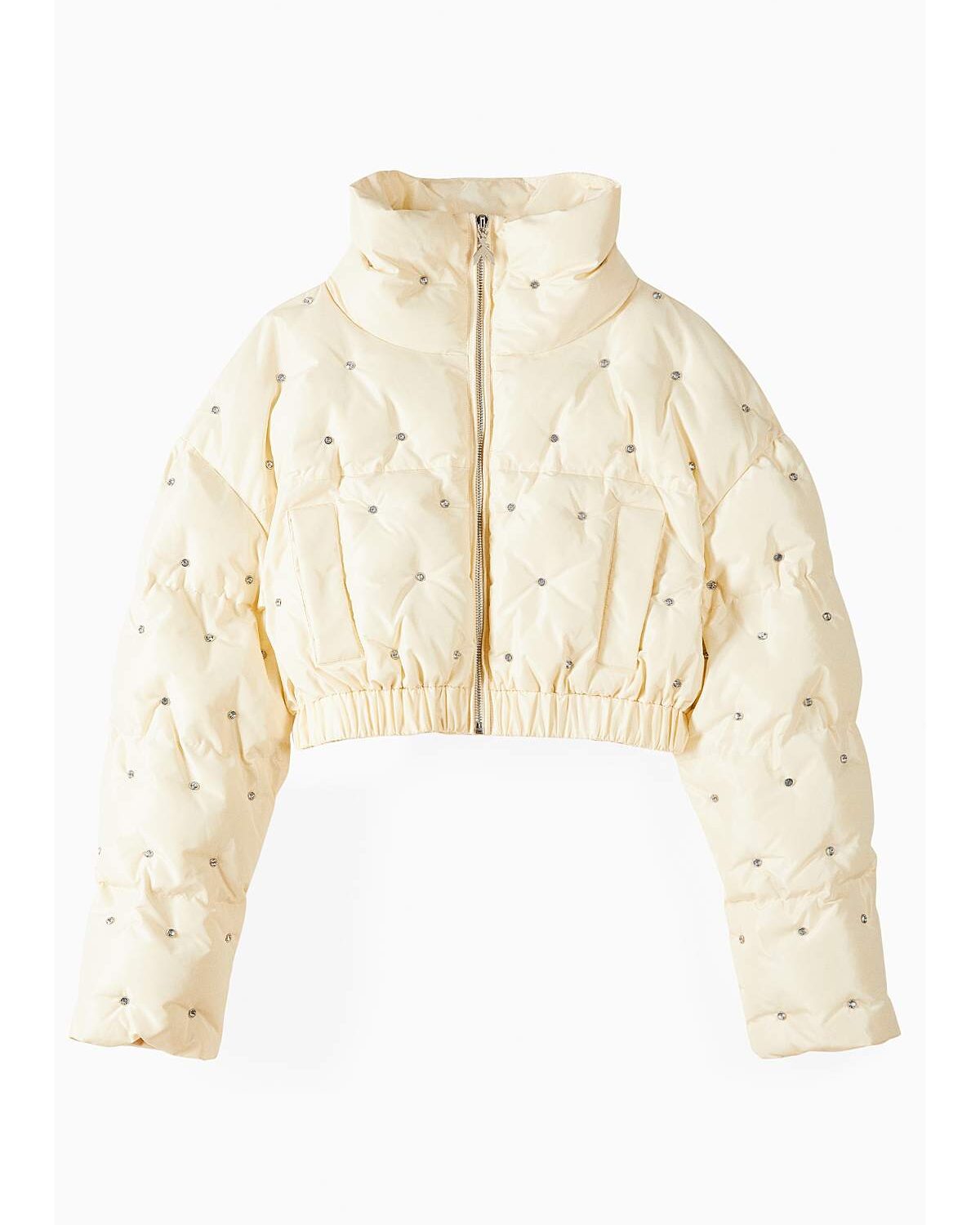 Chaqueta corta de plumas con pedrería