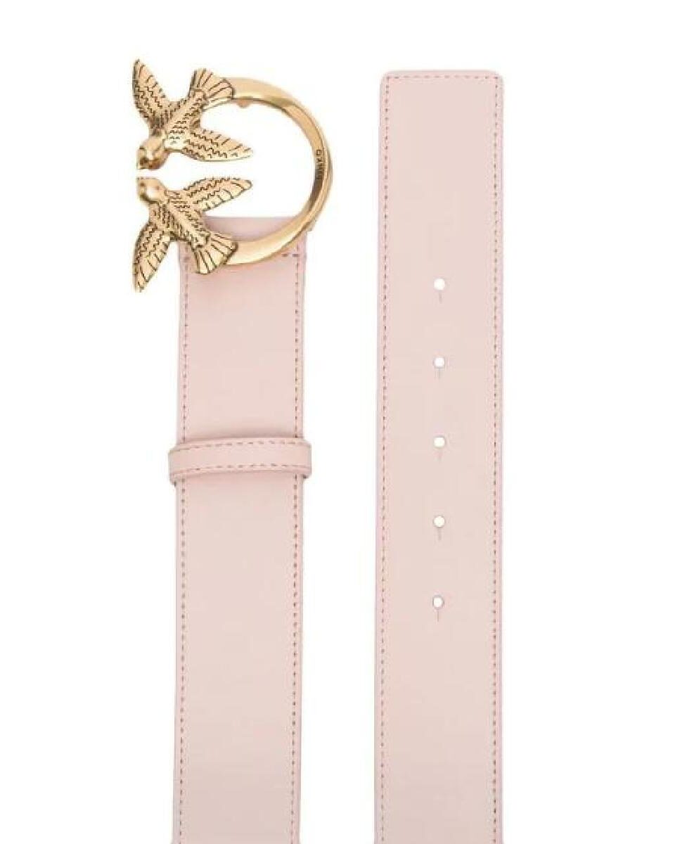 Cinturón para llevar alto en la cintura de piel lisa con acabado sedoso y hebilla Love Birds Diamond Cut de metal.