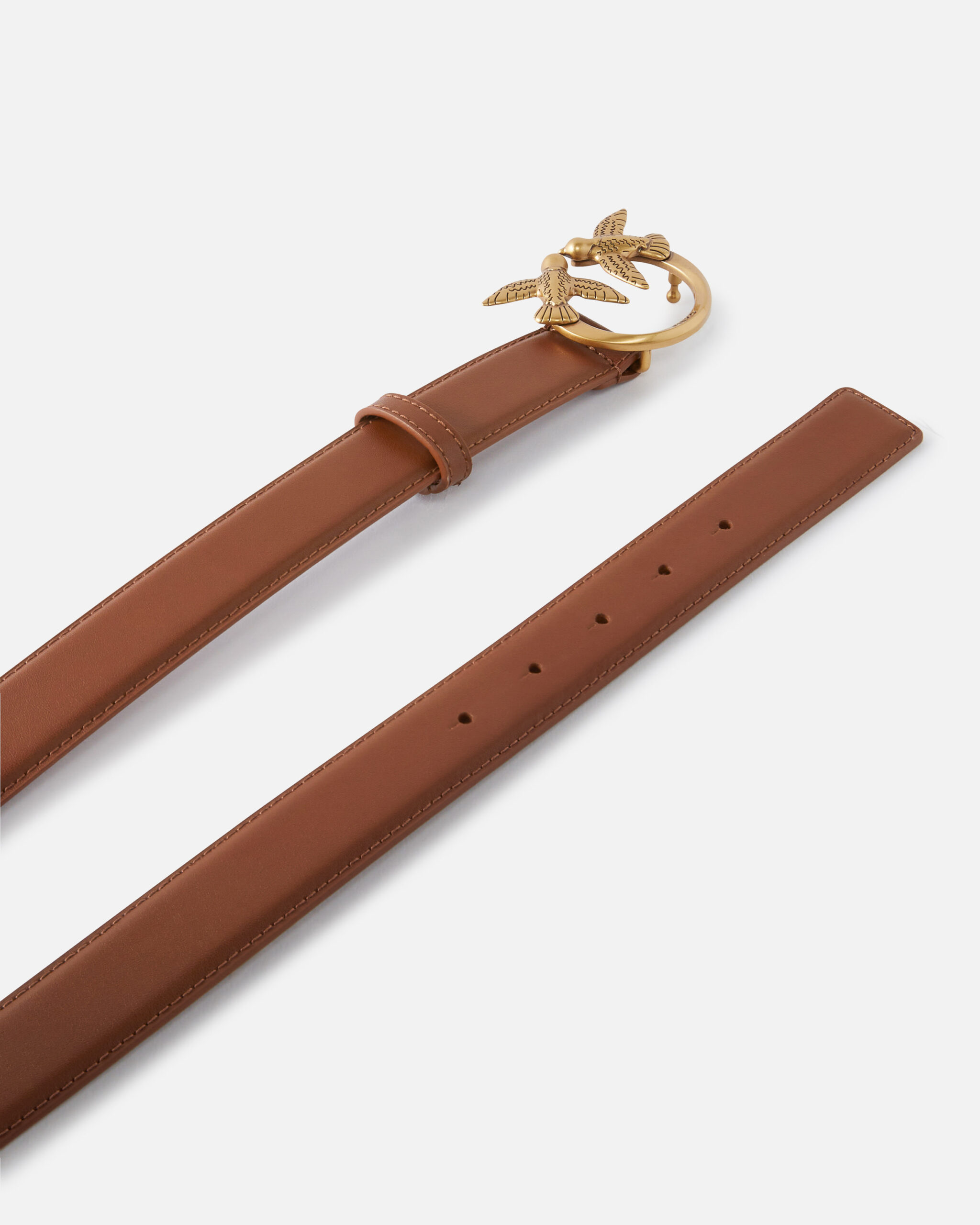 Cinturón de piel lisa con acabado sedoso y hebilla Love Birds Diamond Cut de metal.