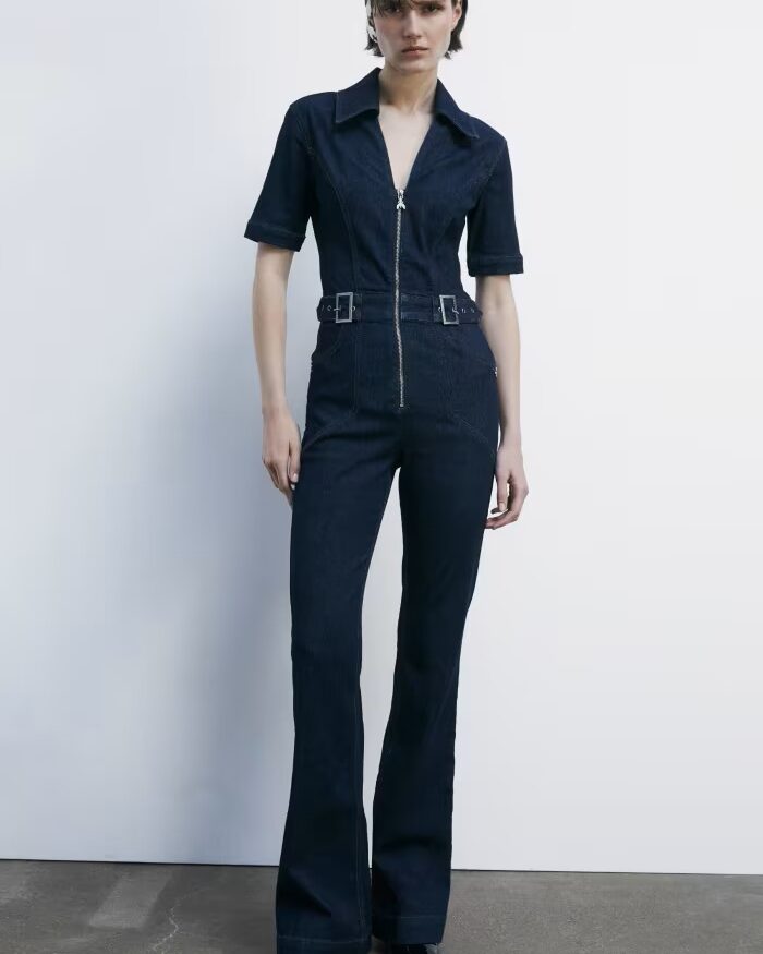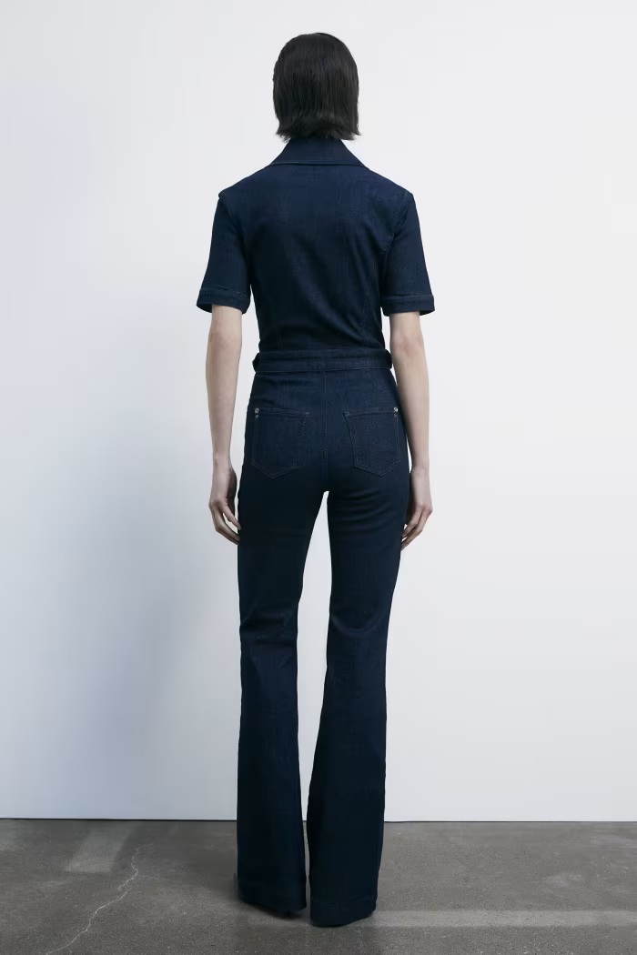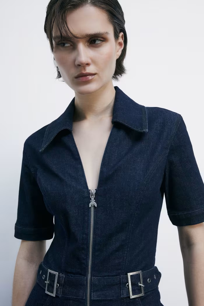 Parte de la cápsula denim de Patrizia Pepe, este mono de manga corta destaca por el detalle efecto cinturón en la cintura: una reinterpretación de los jeans flare que crea un outfit fácil de llevar. Práctico y con carácter, fusiona la inspiración workwear con una línea súper femenina, dibujando una silueta audaz y effortless.