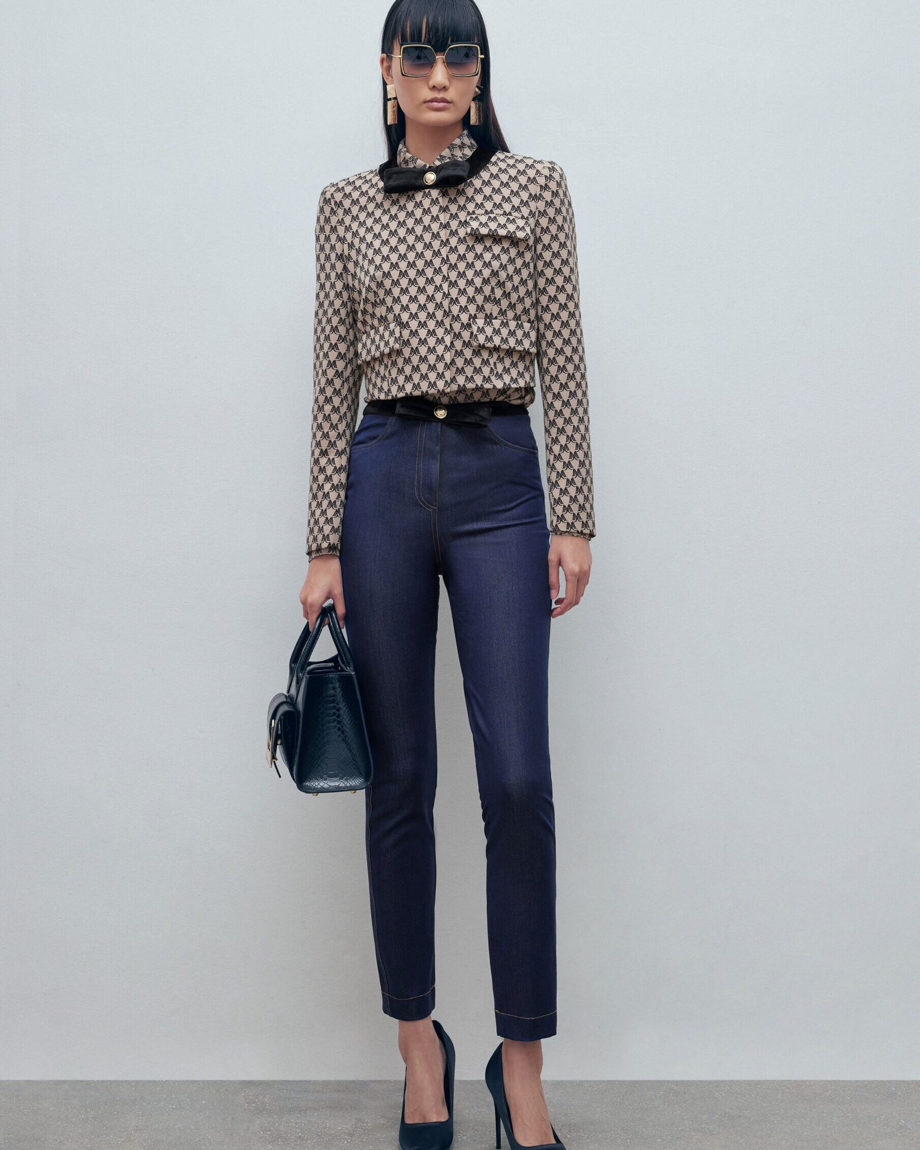 Pantalón elegante de corte ajustado en color azul oscuro, ideal para un look sofisticado y moderno. Fabricado con tela denim de alta calidad, cuenta con un diseño de cintura alta con cinturón integrado y detalles de costuras refinadas. Perfecto para combinar con blusas estampadas, tacones y accesorios como un bolso de mano a juego. Ideal para outfits de oficina o eventos nocturnos. #ModaFemenina #PantalonesElegantes #EstiloModerno #RopaDeTendencia2025