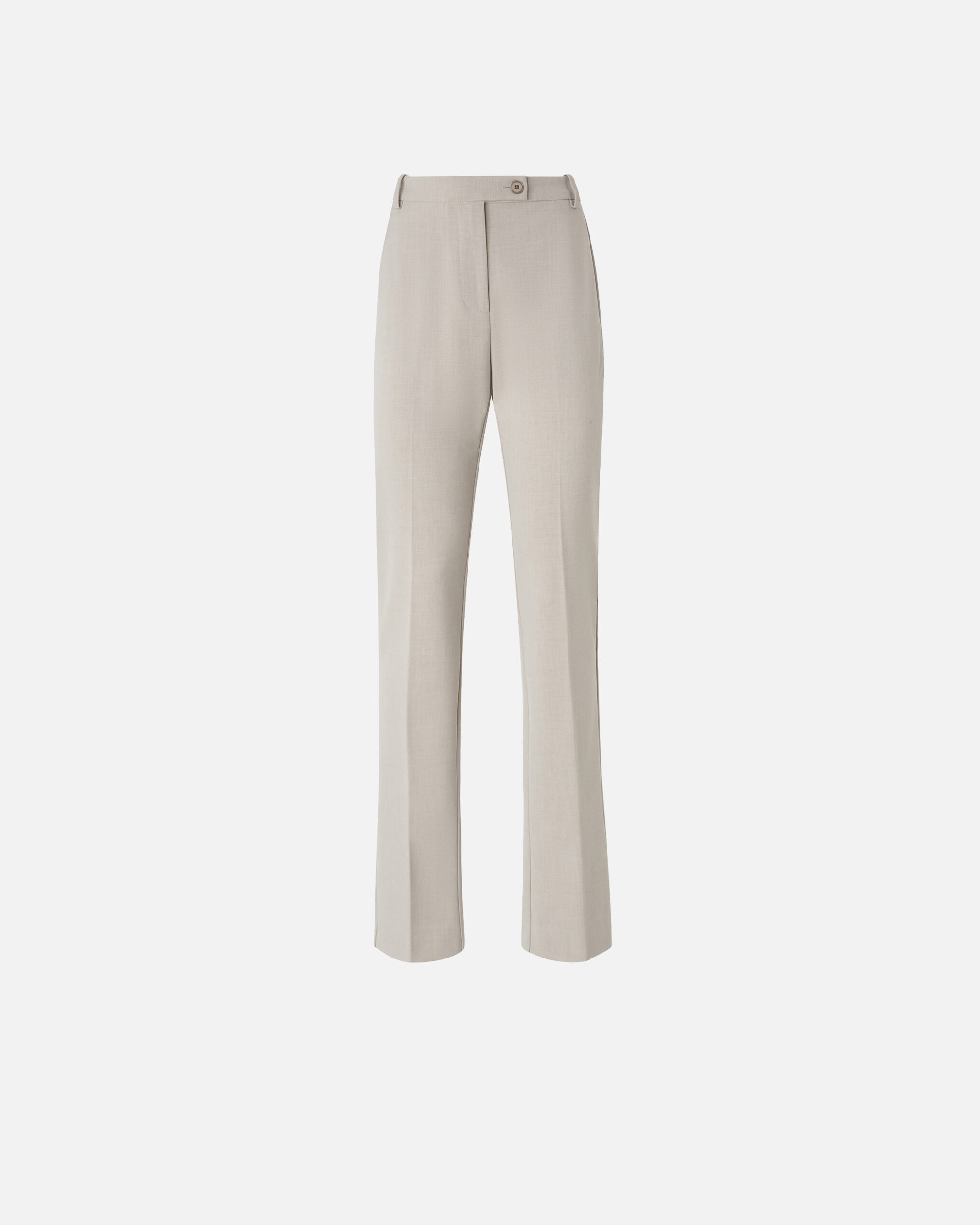 Pantalón largo de corte recto, confeccionado en tela jaspeada de inspiración clásica combinada con punto técnico. Como ejemplo perfecto de la reinterpretación de un diseño más formal, esta prenda ofrece detalles innovadores y deportivos, como el cierre con cremallera casi imperceptible en la parte posterior de las perneras, que permite crear una abertura de altura regulable. Estos son los pantalones perfectos para llevar en la oficina con el blazer a juego o donde quieras llevar un toque refinado, con una camisa o un top especialmente femenino.