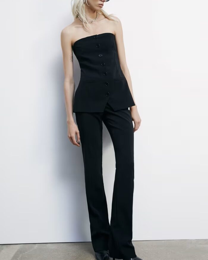 Pantalones de crepé ajustados y de talle bajo con pliegues que realzan y esculpen la silueta. Un modelo versátil y contemporáneo, diseñado para acompañar a la mujer dinámica desde reuniones de negocios hasta eventos nocturnos.