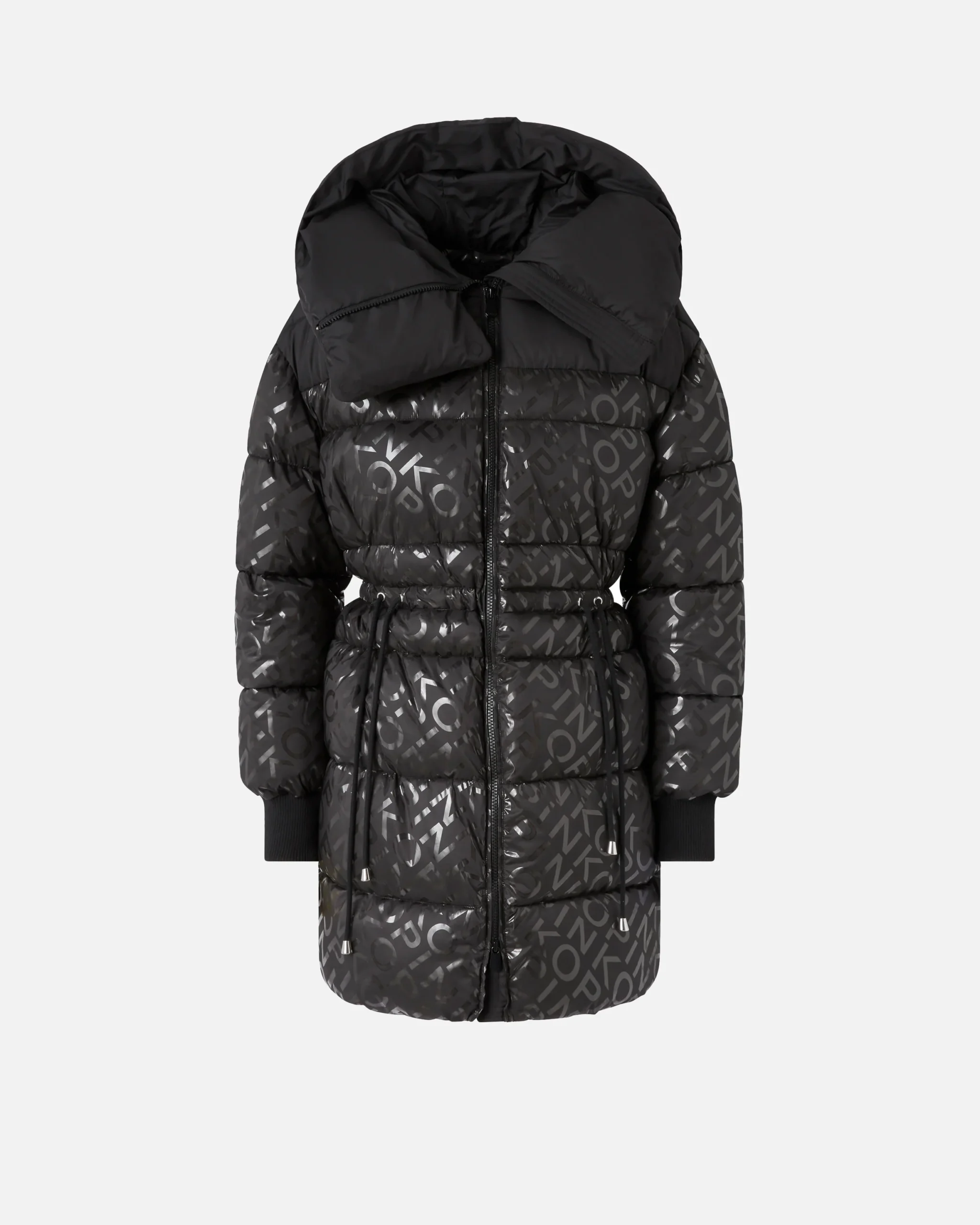 Plumífero acolchado largo de tela técnica con pespunteado horizontal, personalizado con el logotipo de letras PINKO estampado por toda la prenda con un efecto brillante especial. El modelo cuenta con una capucha amplia y envolvente y puños de punto acanalado. En la cintura presenta un cómodo cordón ajustable de inspiración trekking para regular el ajuste. Cierre con cremallera de tirador doble en la parte delantera. Este abrigo es ideal para acompañarte en los días más frescos de principios de temporada al aire libre, con la máxima comodidad, sin renunciar a un toque de estilo.