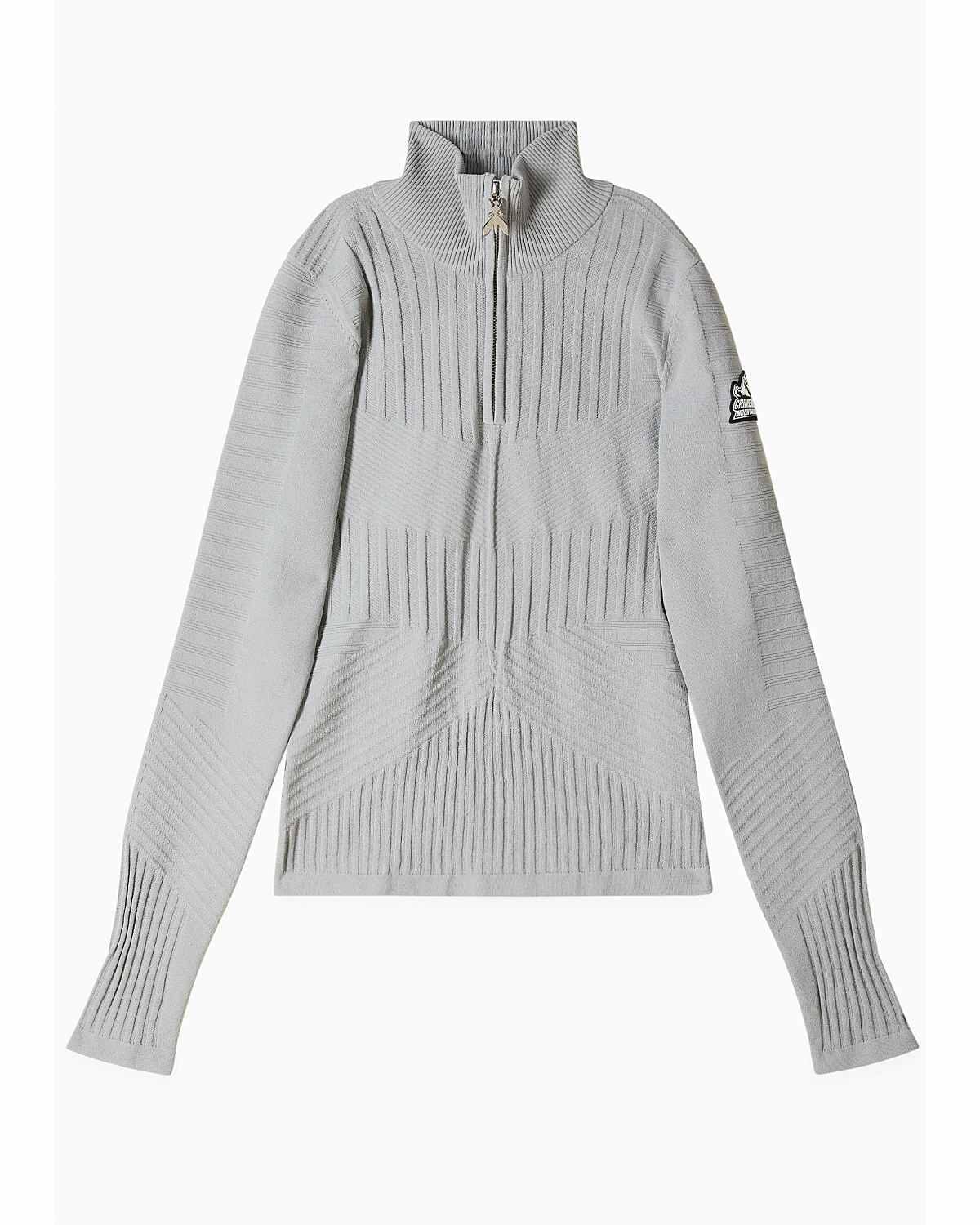 Suéter de punto mixto Mezcla de nailon, galga 16 Prenda de punto Corte entallado Manga larga Cuello alto con cremallera Confección con punto mixto Parche de esquí