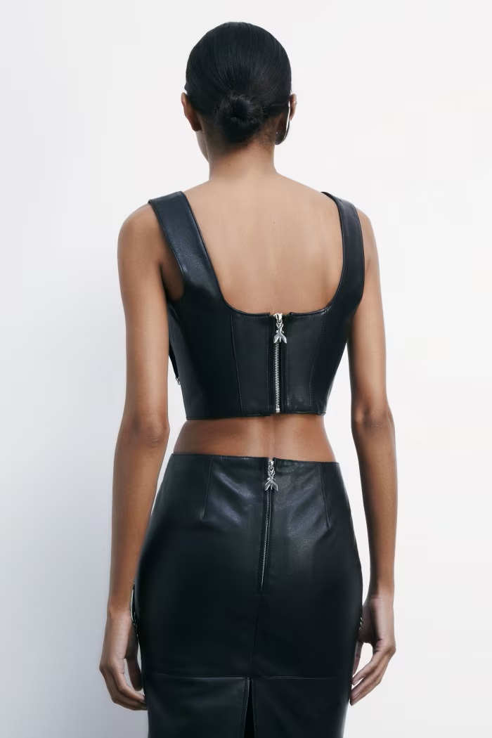 El bustier en napa suave celebra la herencia de Patrizia Pepe con trabajos premium y detalles refinados de piercings y tachuelas que esculpen la silueta. Lúcele con la falda midi a juego para un look impactante de sensualidad audaz, o combínalo con pantalones fluidos Essential para un toque rock sofisticado.