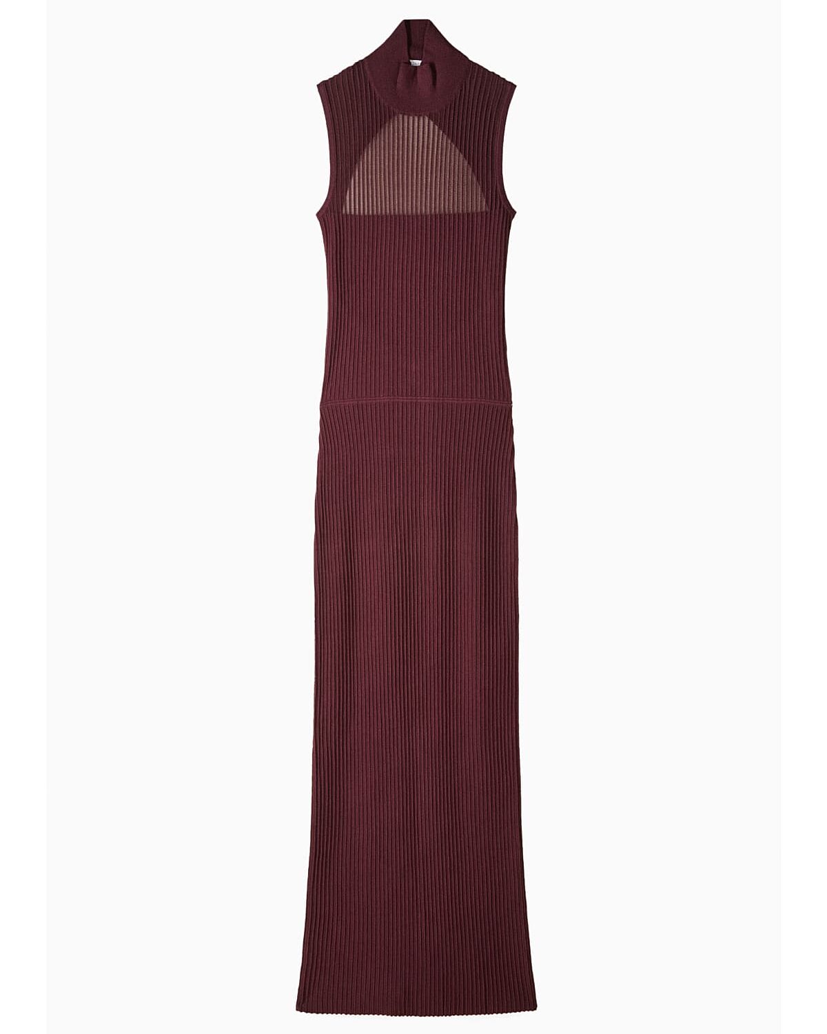 Vestido transparente Mezcla de nailon y viscosa de calibre 16 Prenda de punto Corte ajustado Largo hasta el tobillo Sin mangas Cuello alto Punto acanalado con detalles transparentes